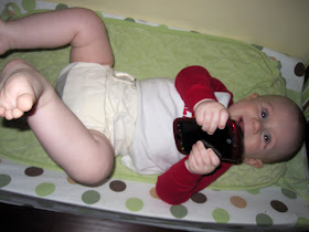 Please ignore the cut near Kellan's eye. That is his souvenir from High Chair Dive 2011 (bad mommy moment) the other day. Luckily, that was the worst of it. Anyway, back to the diaper...